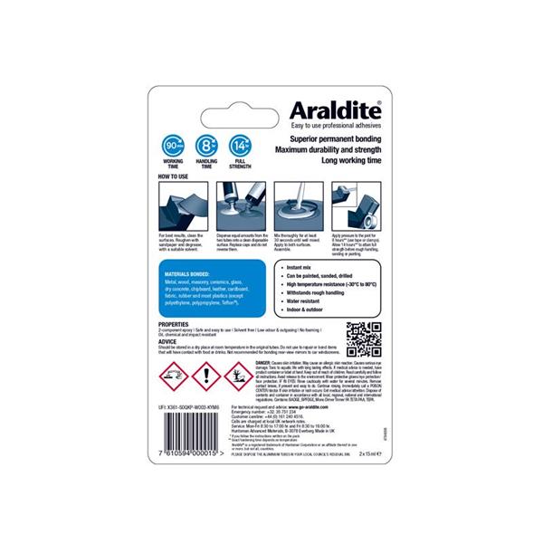 A long lasting, solvent free adhesive which provides an extra strong bond. There are two 15ml tubes made up of a hardener and resin which are ideal for large areas and assembling components. The water and oil resistant formula can bond metal, wood, masonry, ceramics, glass and mosaics for a finish that can be painted and sanded.