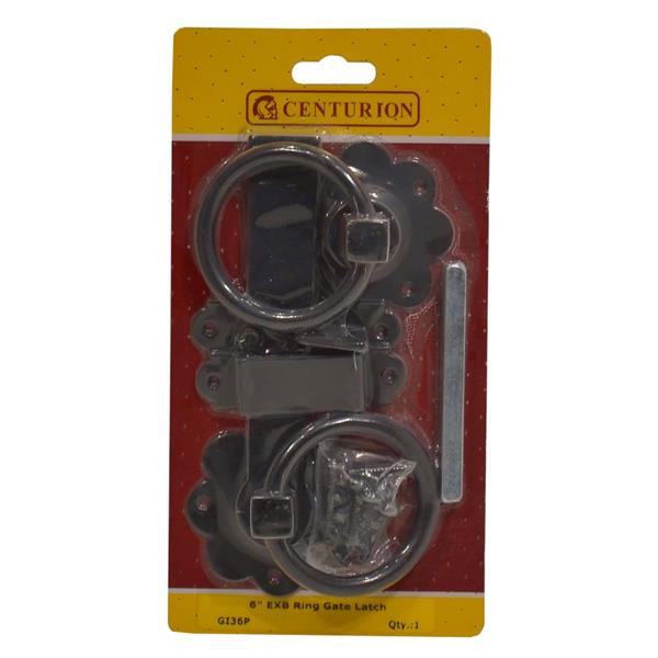 Centurion RING GATE LATCH BLACK 6"