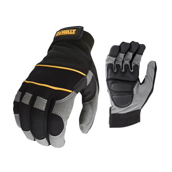 DEWALT Gel Palm Power Tool Gloves with silicon gel pads to reduce vibration and neoprene knuckle straps for added protection. Wipe pad for brow, rubber grip to finger tips for grip, spandex back for breathability.
