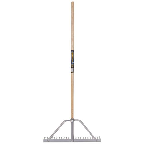 Expert Quality, professional Landscaping rake with a 605mm x 115mm head that has 24 tines. Made from extruded aluminium and attached to a solid ash wood handle.
