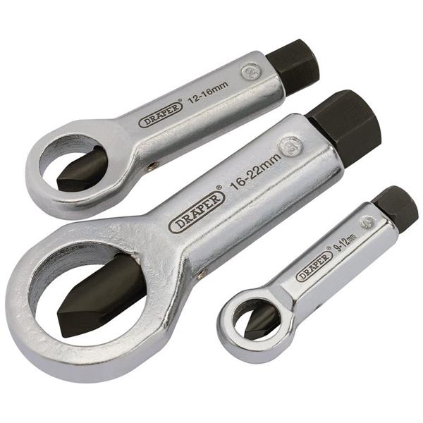 For the safe removal of corroded or damaged nuts without damaging bolt threads. Drop forged steel body hardened and tempered with plated finish. Threaded splitting pin manufactured from chrome molybdenum steel hardened and tempered with chemically blackened finish. Capacities: 9 - 12mm, 12 - 16mm and 16 - 22mm.