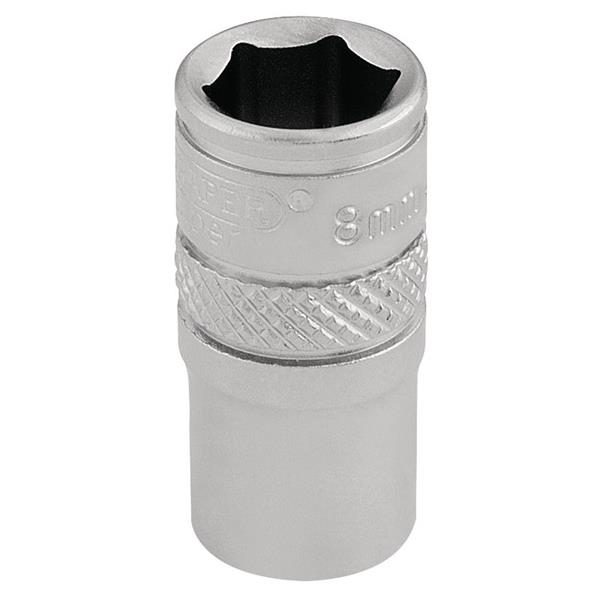 Expert Quality, 6 point socket manufactured from chrome vanadium steel hardened and tempered with a micro satin finish. Each socket has a knurled ring for extra grip.