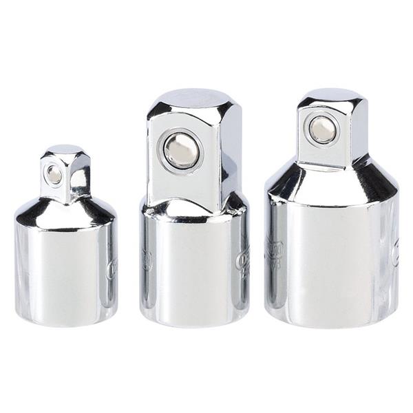 - Three piece set covering all connections between 1/4", 3/8" and 1/2" square drives