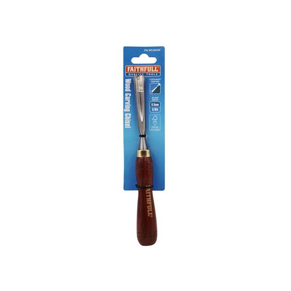 The Faithfull V-Straight Parting Carving Chisel for cutting 'V' grooves, outlining letterwork and corner finishing. Fitted with a wooden handle, made with FSC® 100% Certified Wood from well-managed forests. It also features a deep seated tang, metal ferrule and fully polished blade.