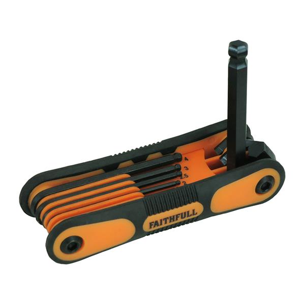 This Faithfull Folding Hexagon Key Set contains a selection of short arm, ball end keys in a soft-grip non-slip storage case. Professional quality keys made from fully hardened chrome vanadium steel. All keys from 4mm have chamfered edges to prevent damage to the blade and fittings. Designed to avoid the inconvenience of lost keys. The versatile ball end drivers operate at angles up to 25 degrees.