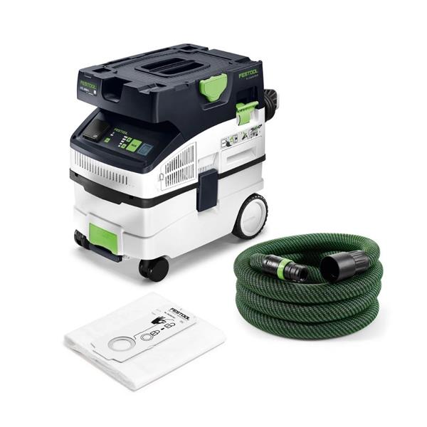 The Festool CTL MIDI I 230 V mobile dust extractor delivers professional-level suction in a compact, mobile design. Approved for dust class L, it features intuitive touch controls, an internal hose garage, and Bluetooth® connectivity for automatic starting with compatible tool perfect for site work or workshop use.