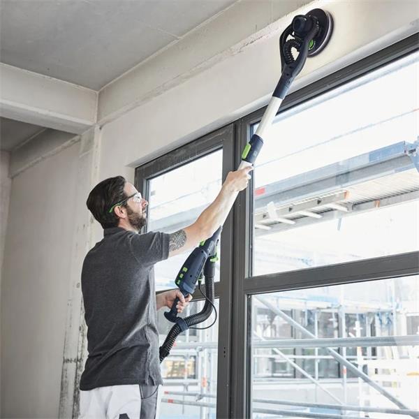 The LHS?2?225 EQI-Plus sets the standard for drywall sanding, combining advanced LED guidance, random-orbit motion, and suction-assisted light weight to deliver ultra-smooth wall and ceiling surfaces. Its modular design extends to 2.10?m, and the EC-TEC motor requires zero maintenance; no belts, brushes, or flexible shafts. When paired with Festool CT series extractors, expect nearly dust-free operation and reduced cleanup time. Built for professionals who want flawless results and ergonomic ease in one long-reach solution.