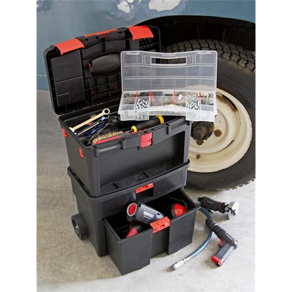 • Mobile toolbox with heavy-duty wheels for added manoeuvrability.
