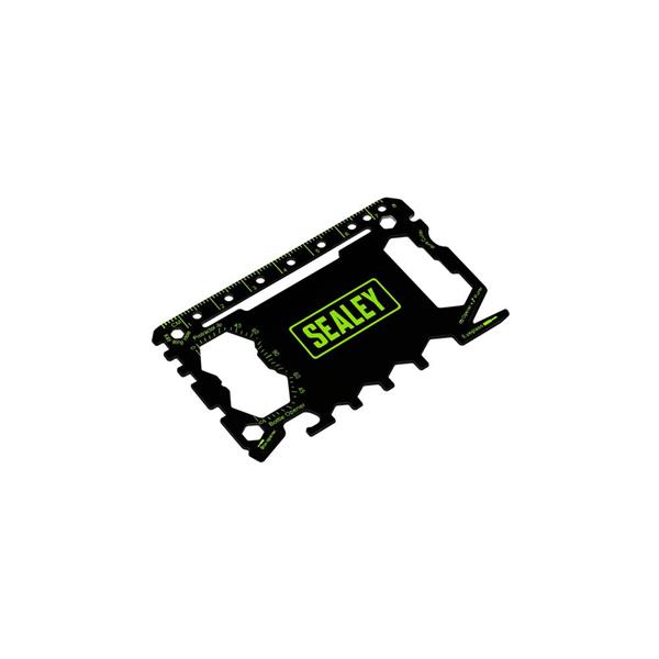 • Functions include a screwdriver, ruler, wire cutter, protractor, bottle opener and many more.