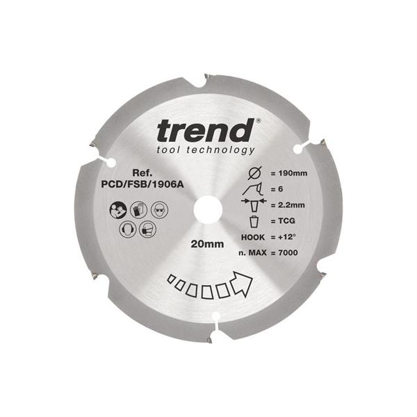 A range of polycrystalline diamond blades for cutting a wide variety of ultra-hard and abrasive materials. For use in circular, plunge, table and mitre saws, Trend PCD Fibre Cement blades are exceptionally durable and retain their cutting edge for longer than TCT alternatives. Ideal for AQUAPANEL®, HardieBacker®, gypsum, composite decking & cladding, laminate flooring, fibre & glass reinforced polymer and compact laminate worktops.