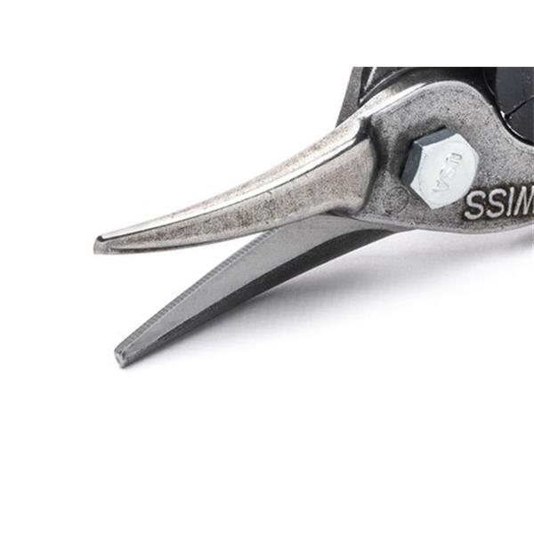 They have compound lever action handles that are suitable for heavy stock, even when cutting tight curves. Cuts right from tight curves to straight up to 1.2mm mild steel. The snips have a convenient, protective safety latch.